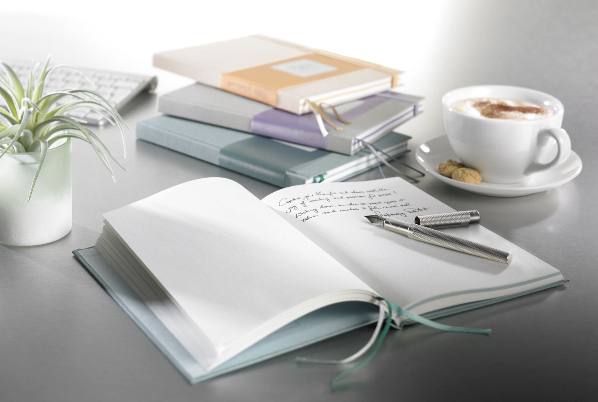 Das Notizbuch „1584 by Hahnemühle“, erhältlich in den Farben seegrün, flieder und peach, ist ein eleganter täglicher Begleiter. Es bezaubert durch puristisches und gleichzeitig feminines Design und überzeugt zudem durch feine Details.